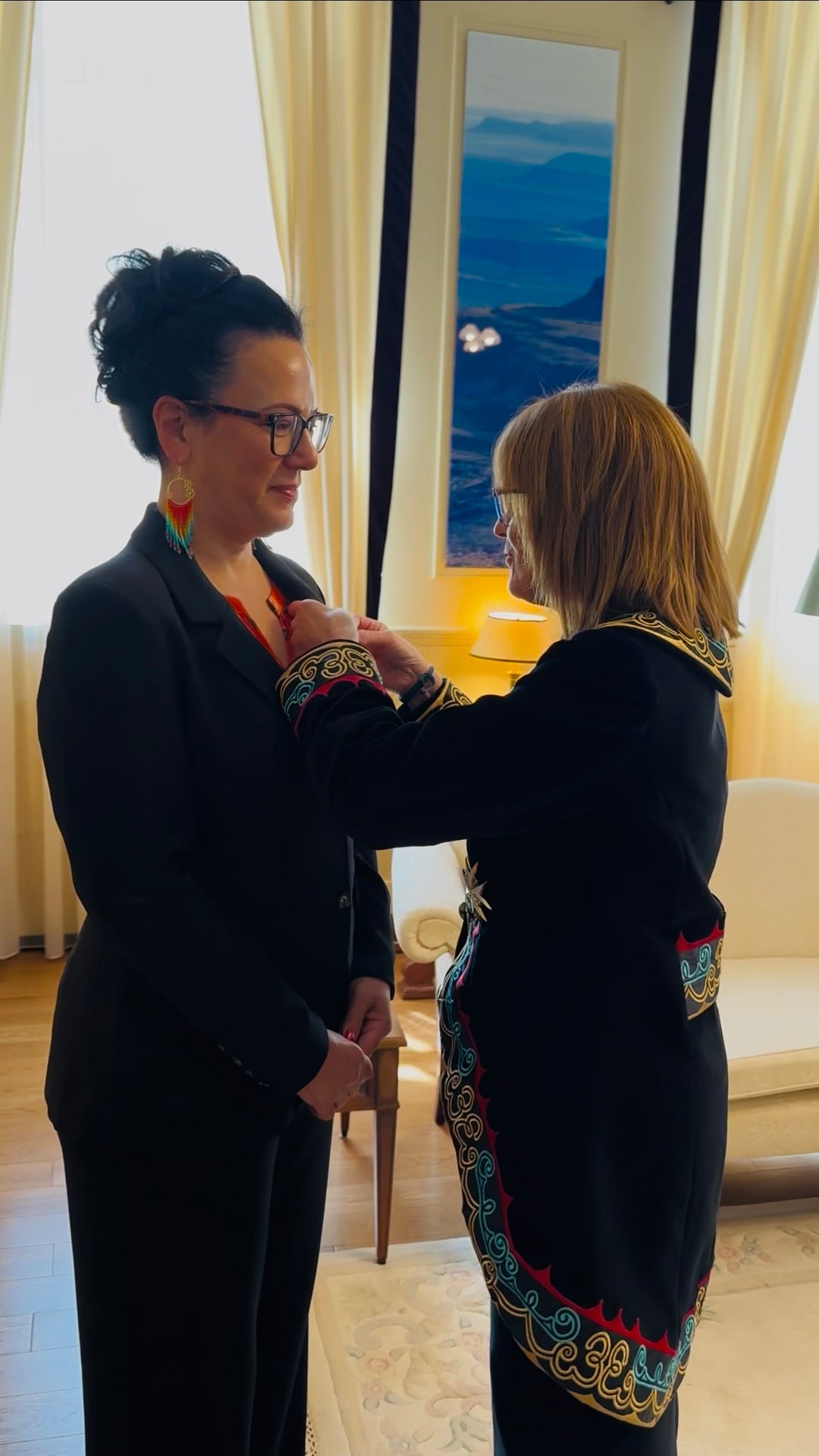 I had the absolute pleasure of meeting two remarkable women—Actress Andrea Menard from the TV Series Sullivan’s Crossing and Mohawk Olympian Waneek Horn-Miller—at the Global Indigenous Language Summit. Fingers crossed my designs make an appearance in the next season of Sullivan’s Crossing!