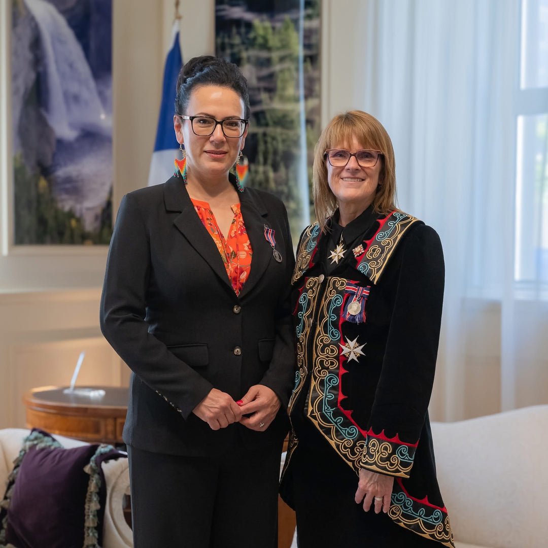 Tracey Metallic, recently received The King Charles III Coronation Medal from Quebec Lt.-Gov. Manon Jeannotte.